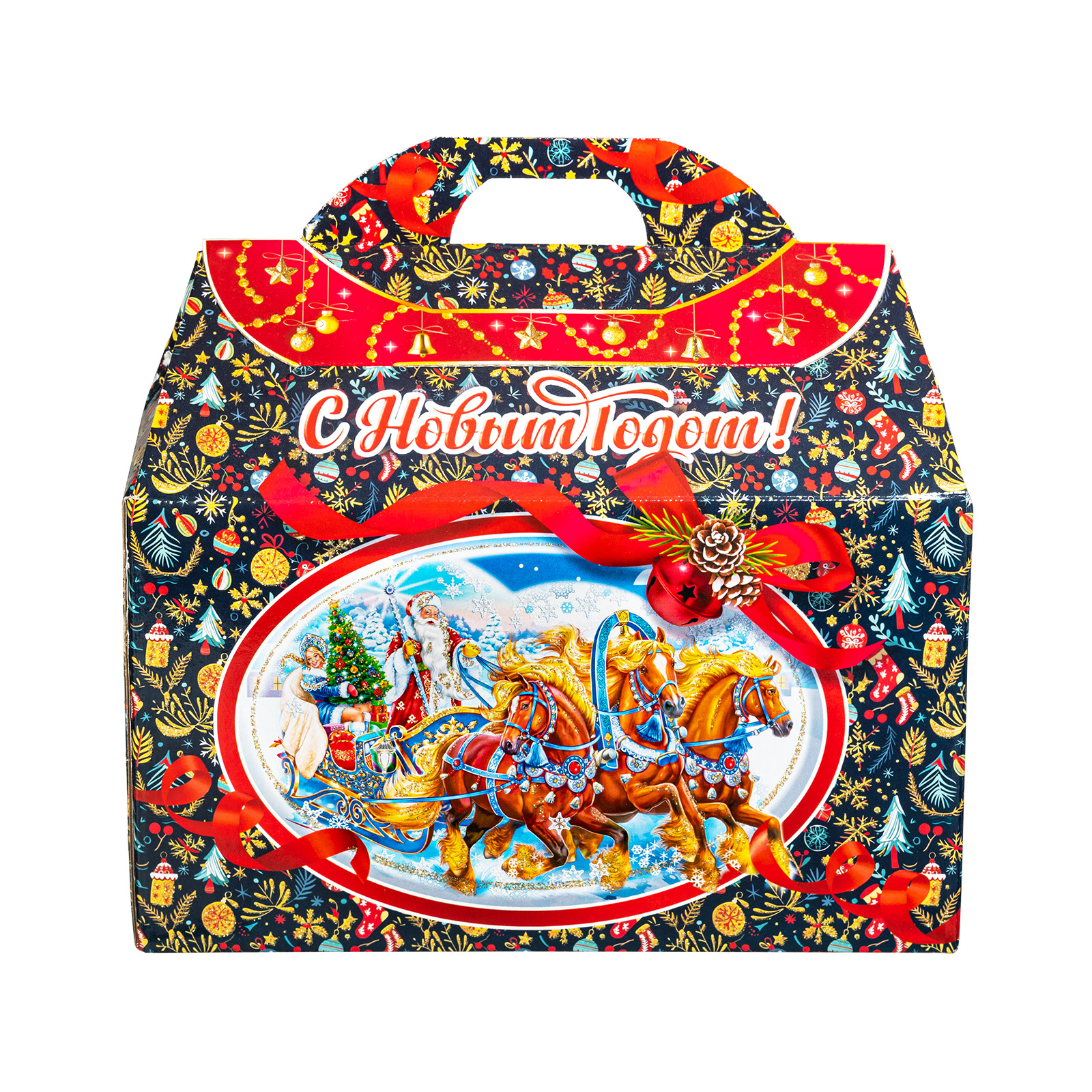 Представляем вам Новогодний Сладкий Подарок в форме стильного чемоданчика! Этот уникальный набор подходит как для подарков близким, так и для корпоративов, создавая атмосферу волшебства и тепла в эти зимние дни!Яркая упаковка сразу привлечет внимание своим оформлением: темно синий фон здесь идеально сочетается с контрастными элементами. Наличие удобной прорезной ручки делает подарок очень удобным для транспортировки. Внутри набора находятся разнообразные вкусные сладости, которые станут украшением любого праздничного стола. Помимо сладкого наполнения, набор может порадовать небольшим памятным сувениром в виде символа наступающего года.