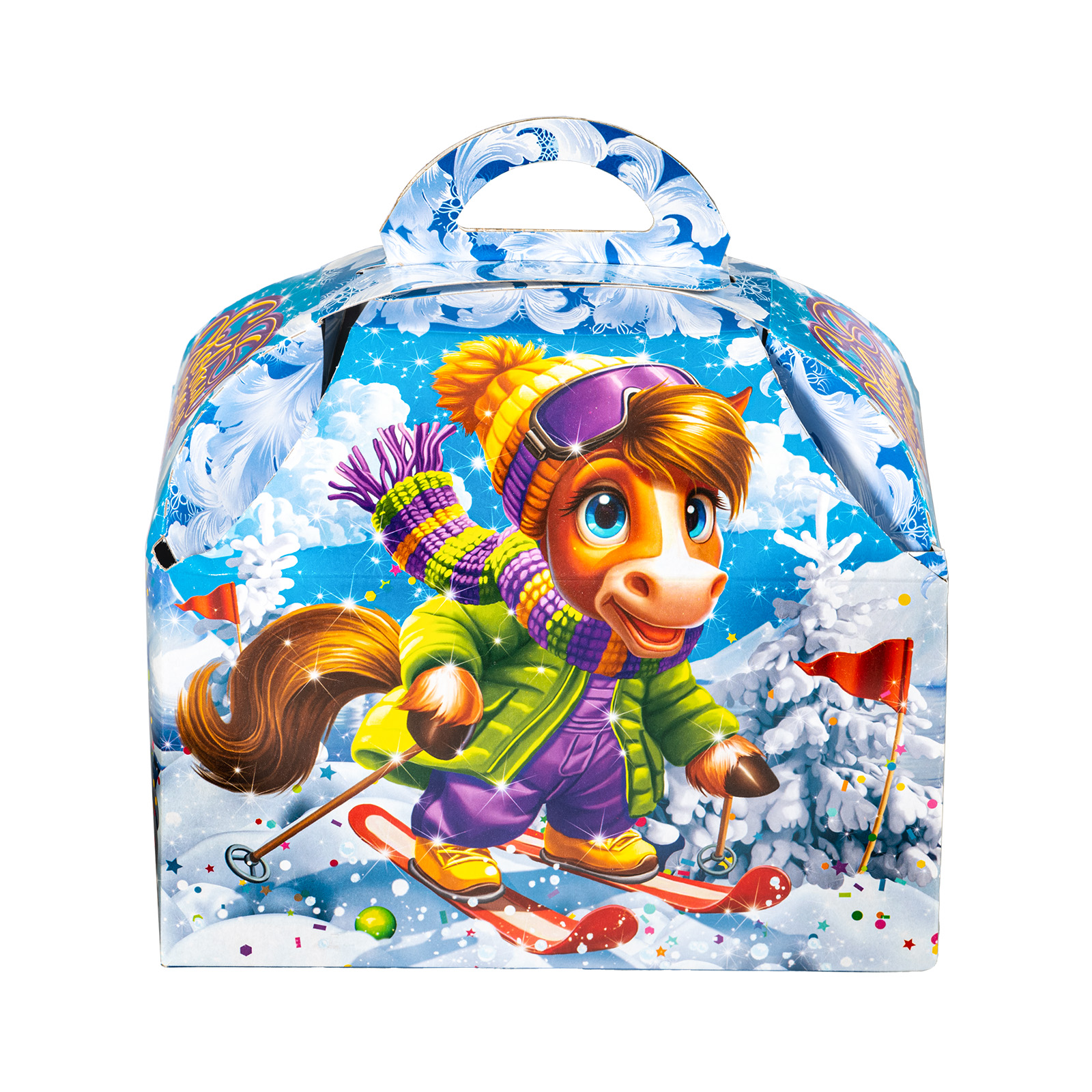 Этот новогодний сладкий подарок в картонной упаковке легко поднимет настроение сластене любого возраста. Тишина уснувшего зимнего леса вдруг резко была нарушена одним веселым лыжником, который с вихрем пронесся по снежным просторам. Судя по выражению его довольной мордочки, заезд прошел замечательно - самое время отогреваться горячим чаем с вкусными сладостями! Присоединяйтесь и вы, ведь сладостей в этом наборе хватит на все новогодние праздники! Кроме того, в состав подарка входит небольшой памятный сувенир, который еще долго будет напоминать о веселых новогодних днях.